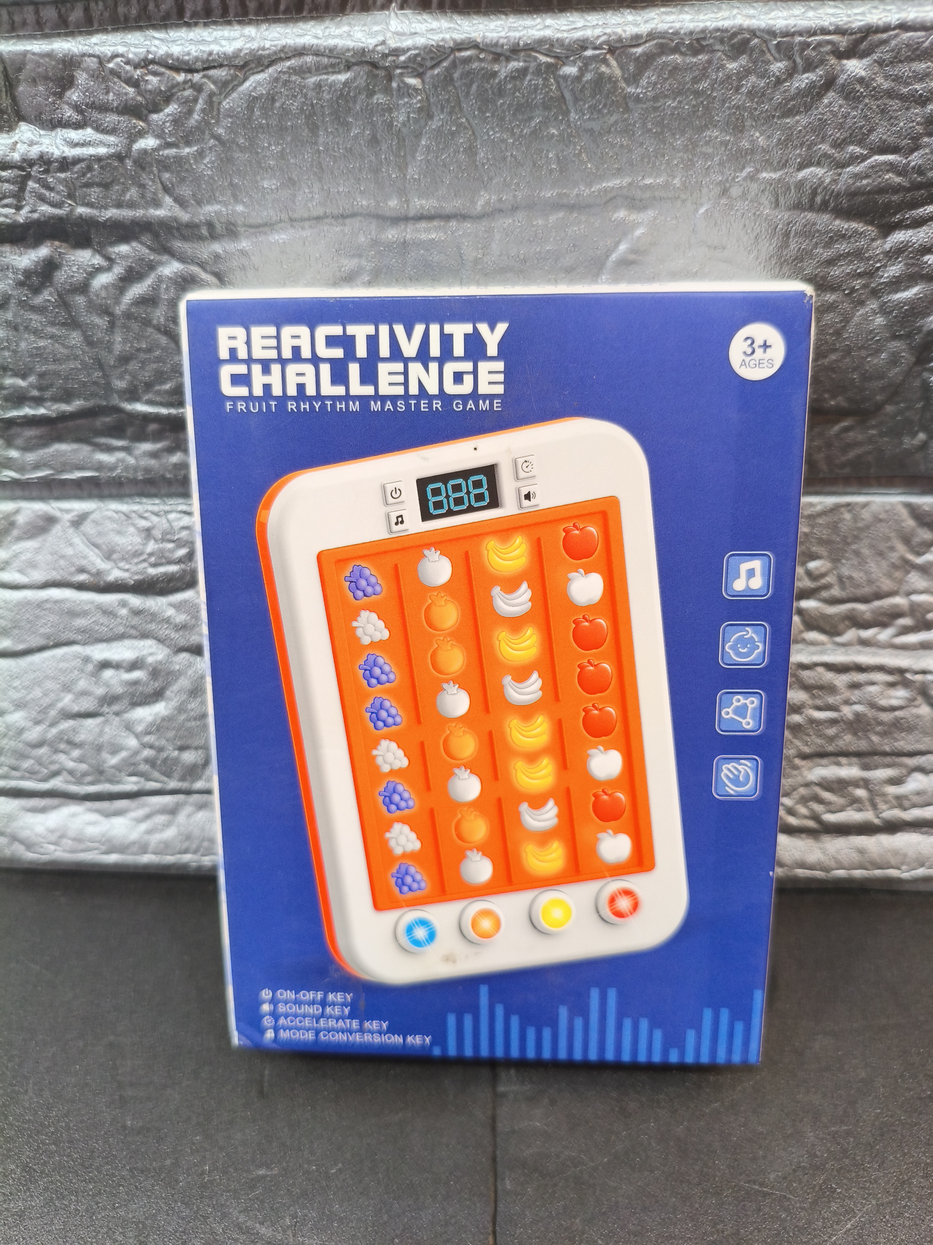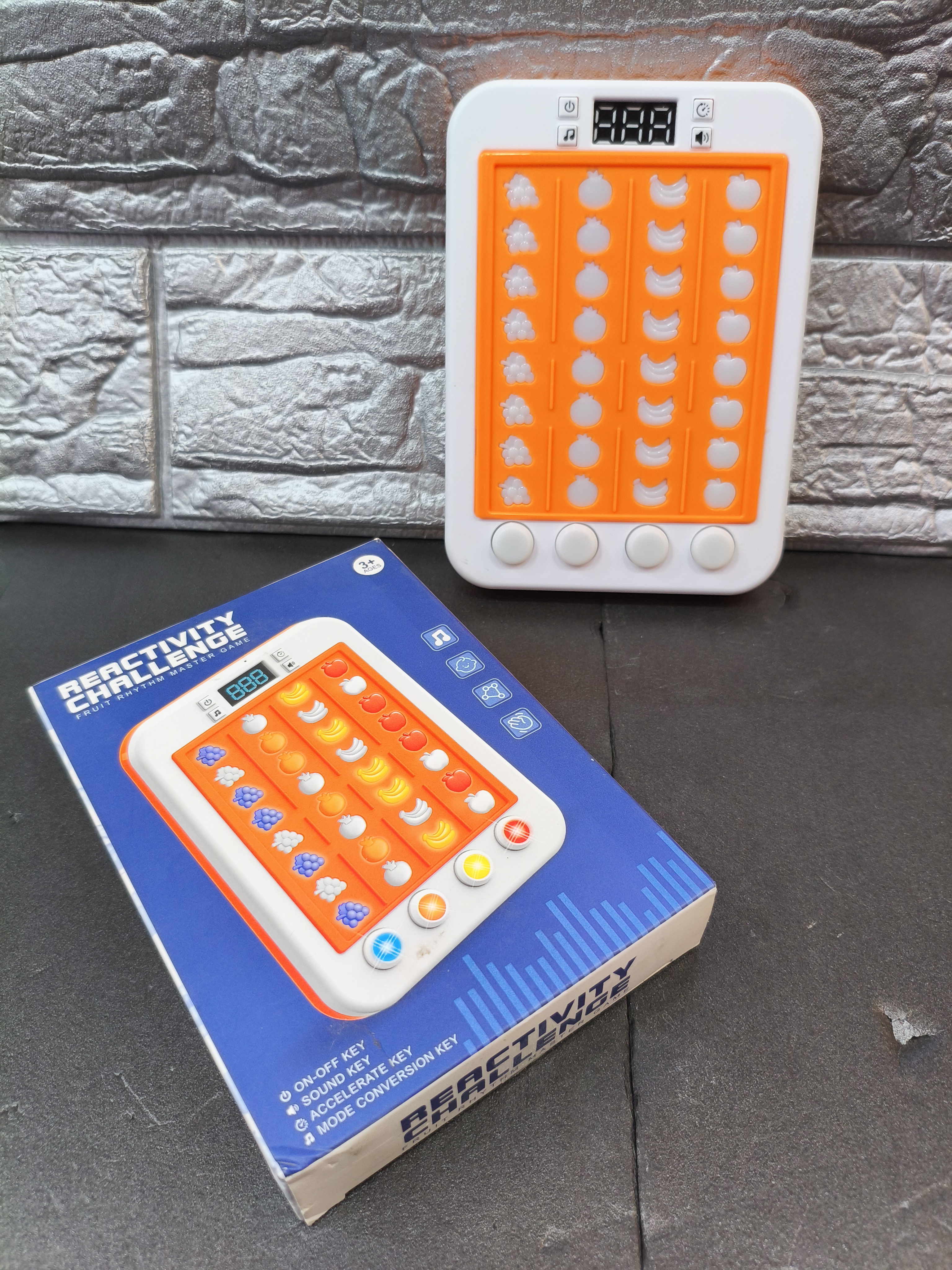 سایر توضیحات: باتری خور موزیکال چراغدار بازی هیجانی عکسالعملی هست که به محث رسیدن میوه به انتها باید با دکمه روی دستگاه میوه را کلیک کرده و اجازه رد شدن به انتهای مسیرو نمیدهیم دارای صفحه نمایش که سرعت و لول بازی را درآن نشان میدهد